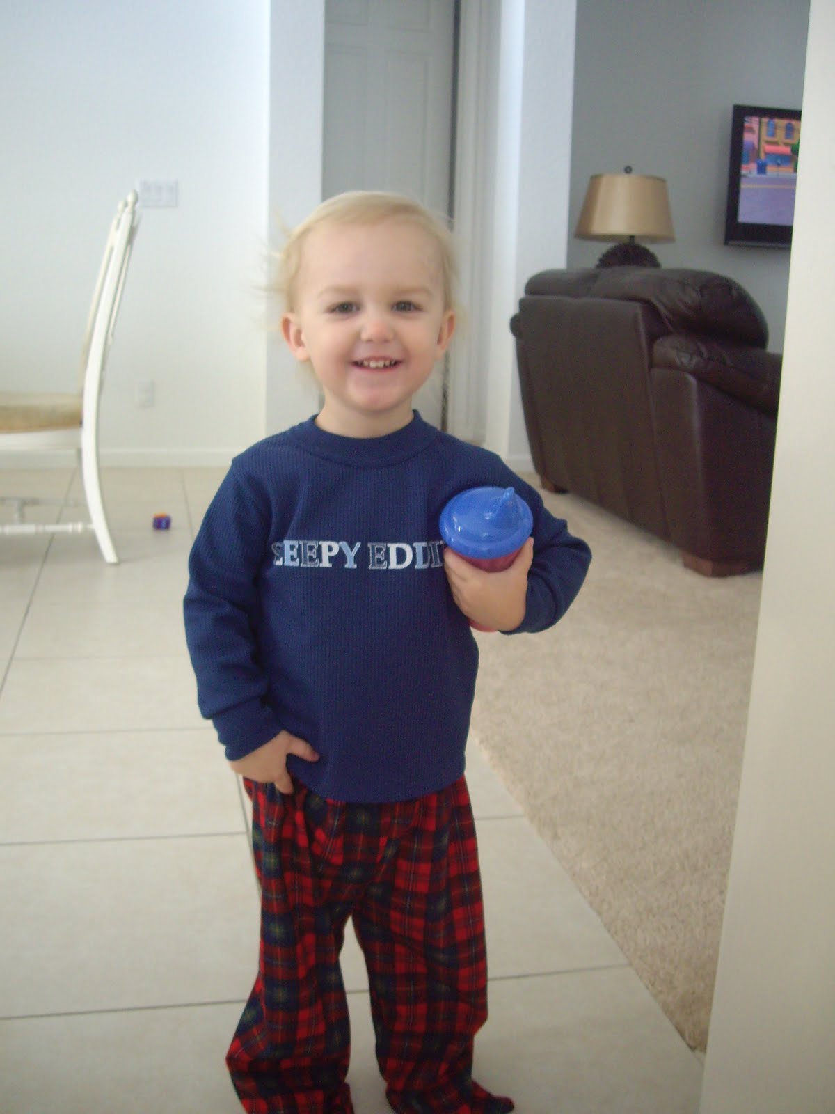 It finally made it out of the 80s here in South Florida. In fact, the overnight low was in the mid-40s! Can you hear the excitment in my voice? :) It's actually starting to feel like Christmas.Here is my adorable son modeling he "winter" PJs.
