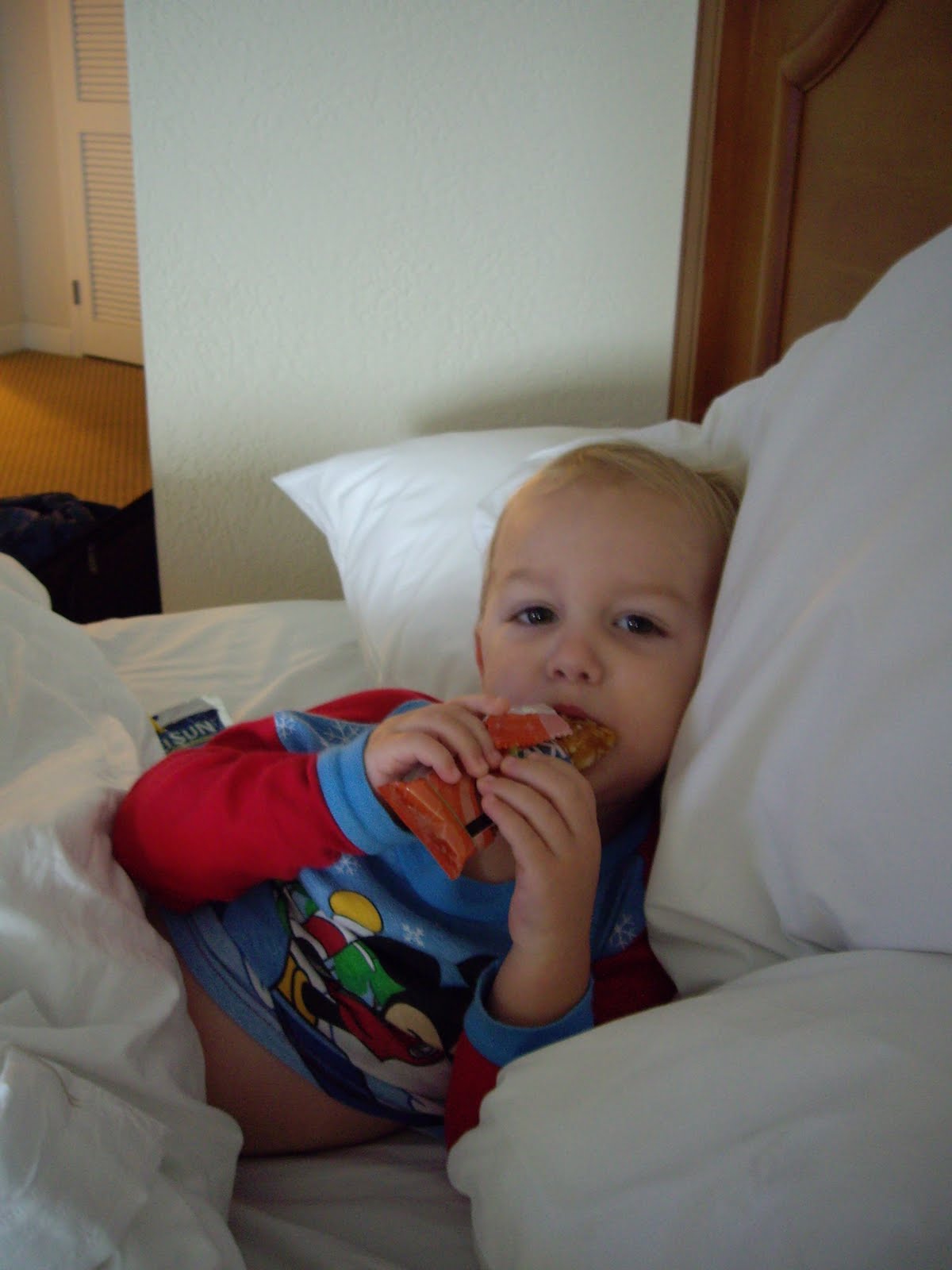 Here he is enjoying his breakfast in bed.