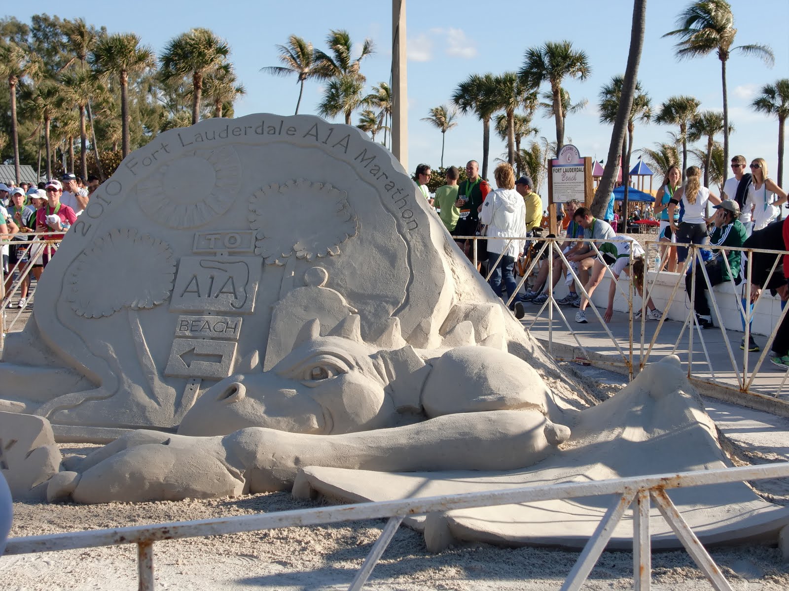 I found Tricia and my son and then started picking up some food. There were tons of options and even a beer truck. One of the unique things about this race was the photographer taking picture with the finishers and a sand sculpture. (official picture coming soon)