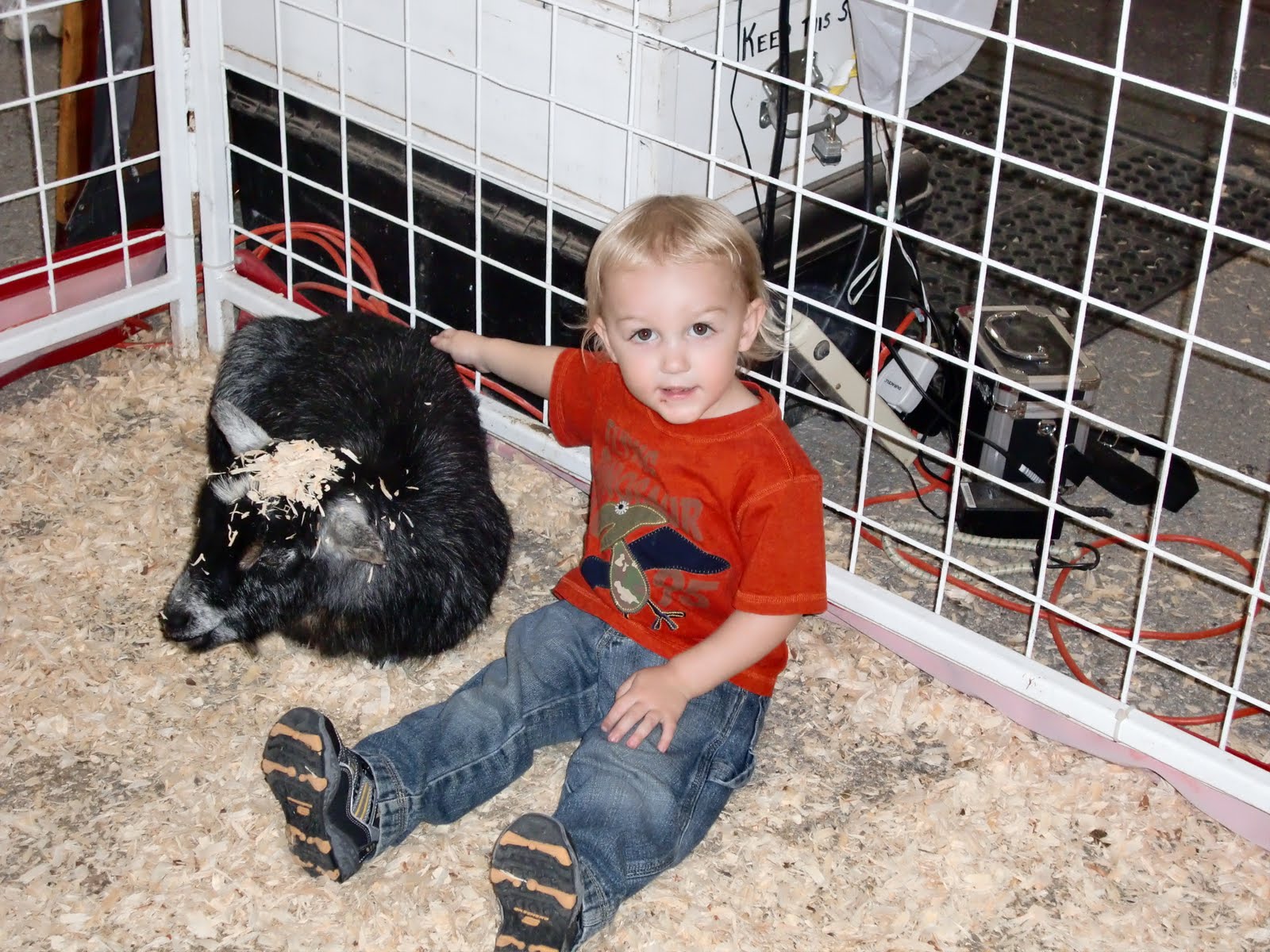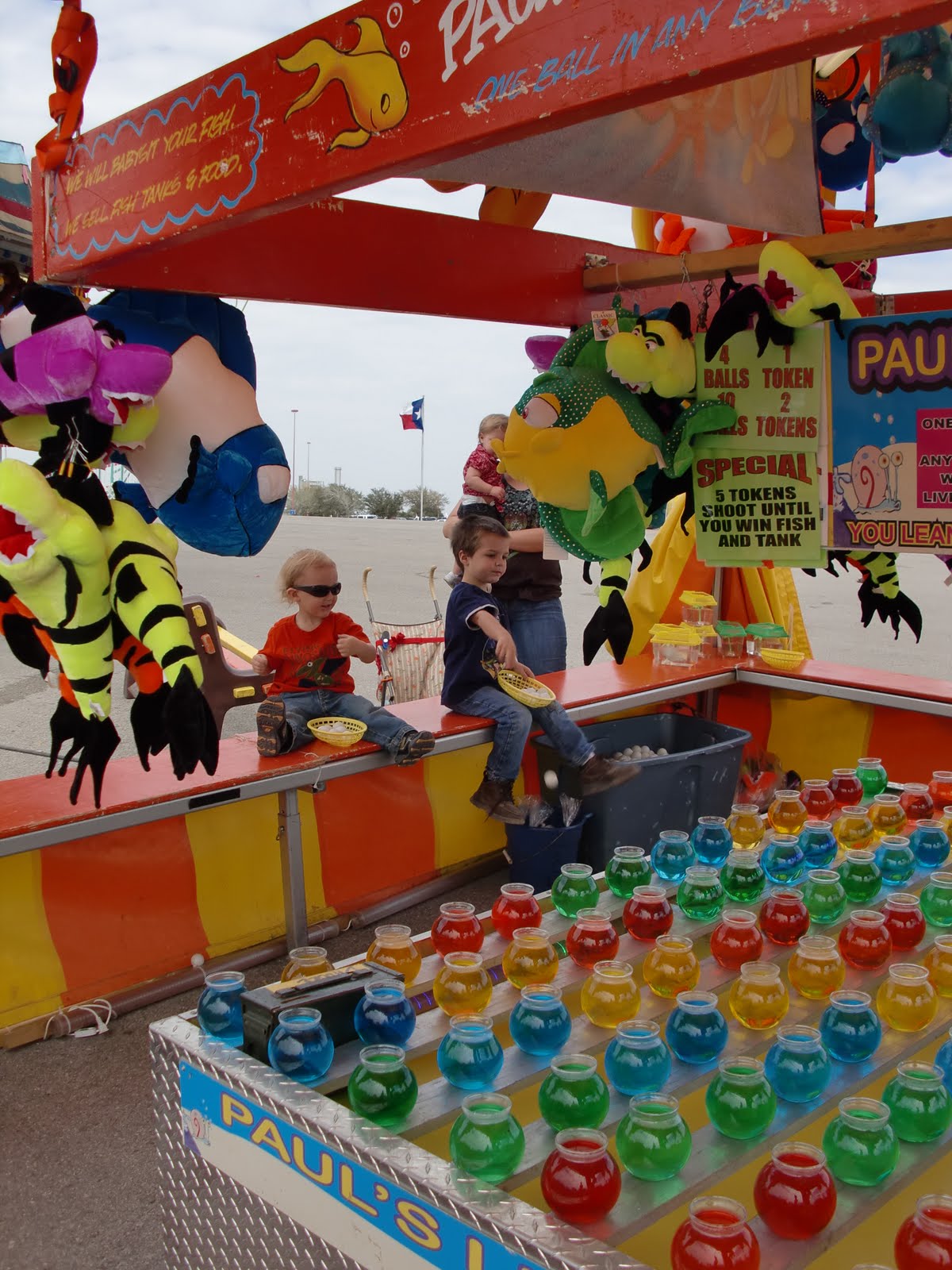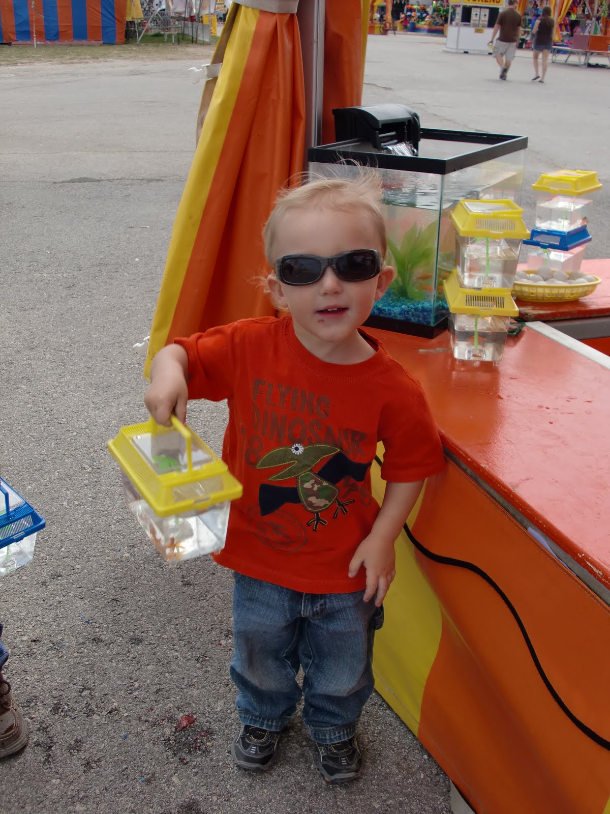 My kiddo petting a goat and trying to win a fish.