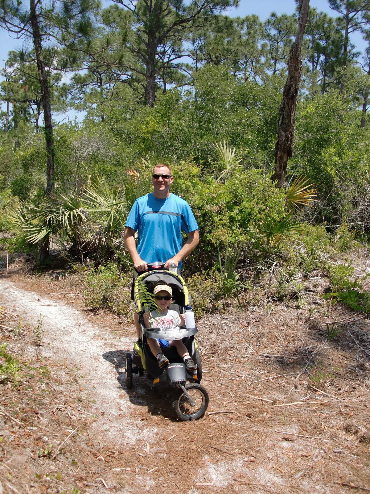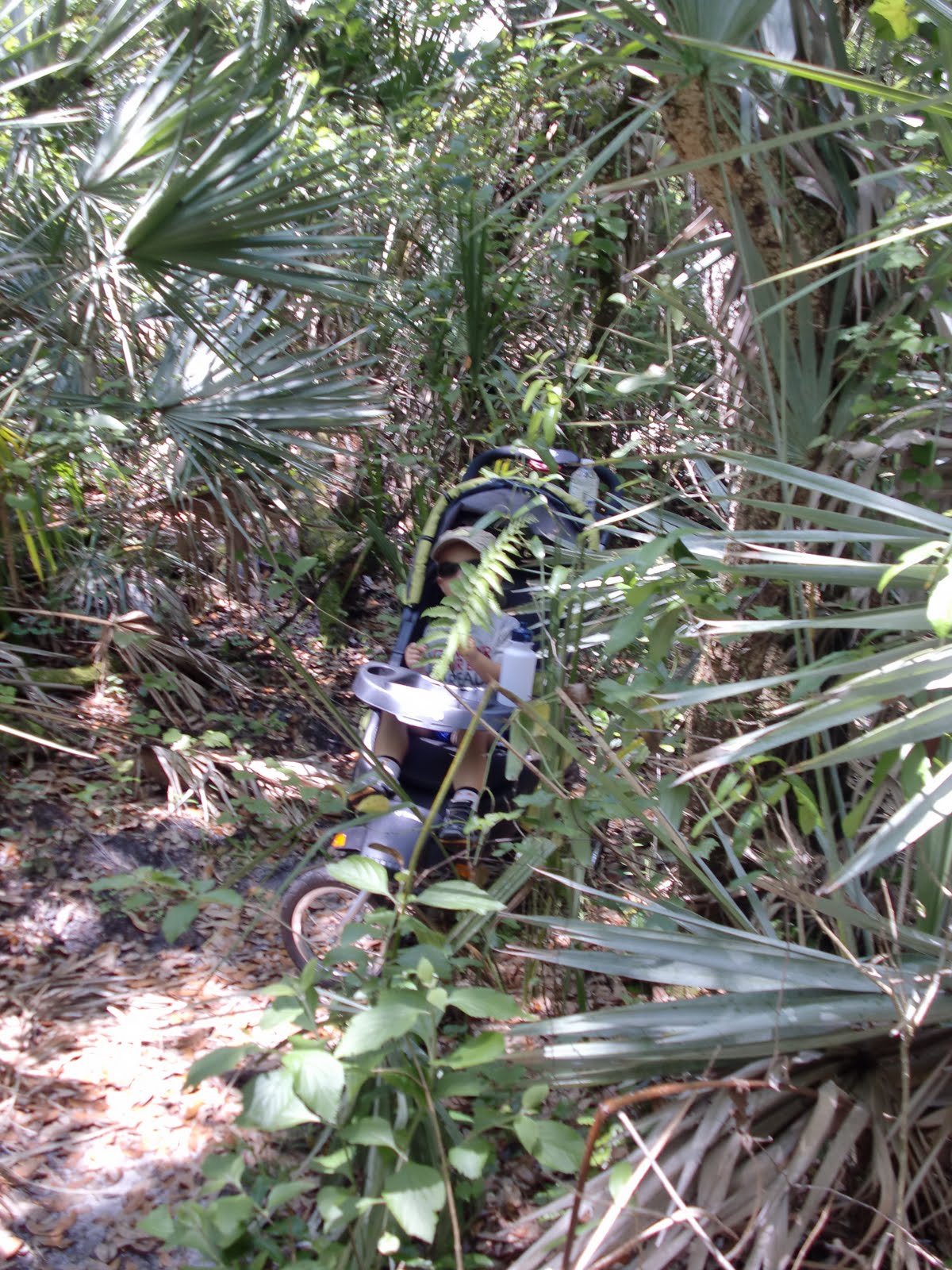 Then we must have taken a wrong turn because the "trail" disappeared and the stroller couldn't make it through the foliage. Can you spot the jogging stroller?