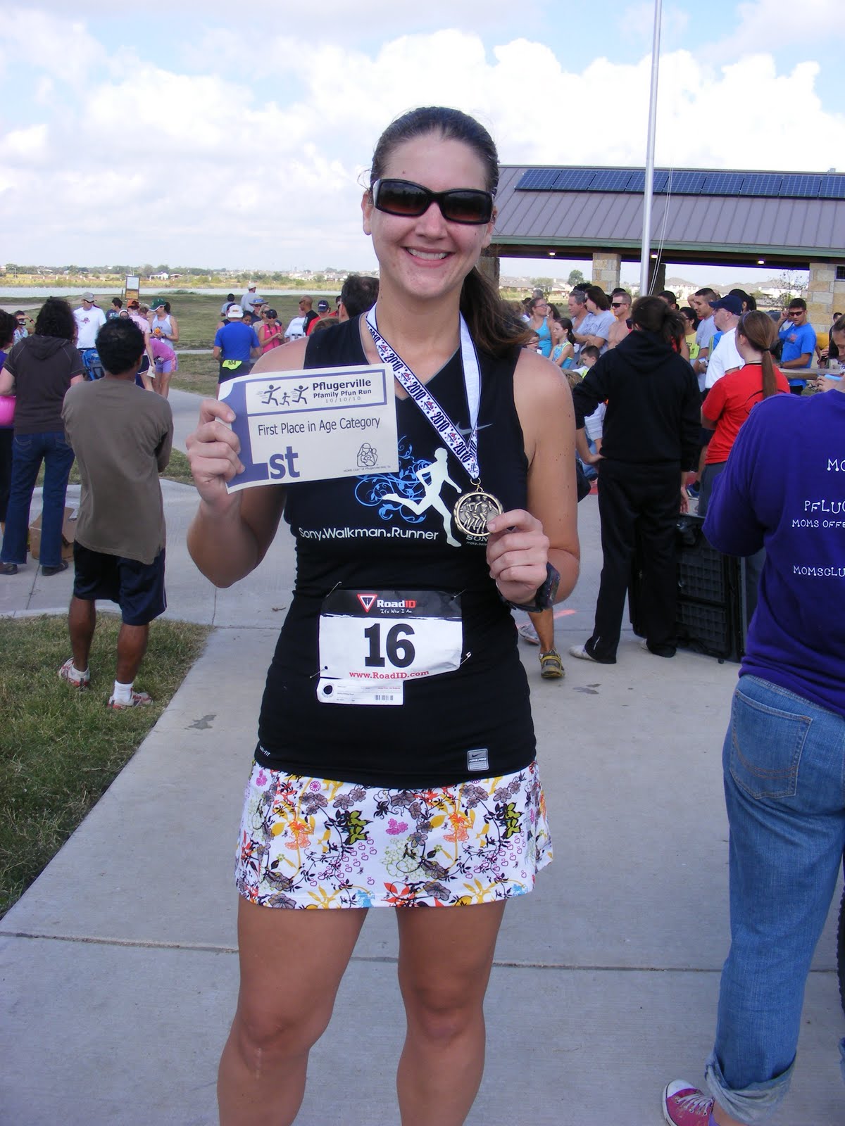 While he enjoyed his treat, the race directors started the awards ceremony. Imagine my surprise when the 1st place winner of the female 20-29 division was ME. (pretty sure they had to call my name twice)