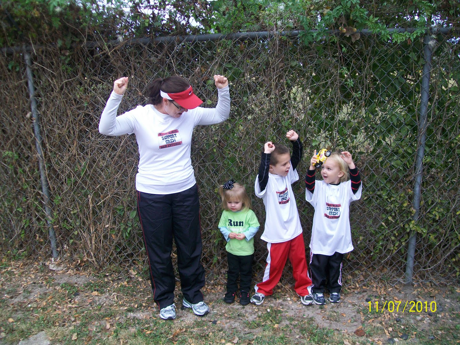 I put my Walkman on and tried to internally focus on simply moving forward. We were back running, but slowed down due to the pain. My family had planned to meet us around mile 13. I focused on the goal of making it them without stopping. The thought of my sons excitement kept me going for the next few miles. We passed the 13.1 mile mark at 2:20. Charles stopped at the porta potties and I kept going until I saw my family. What a welcome sight: