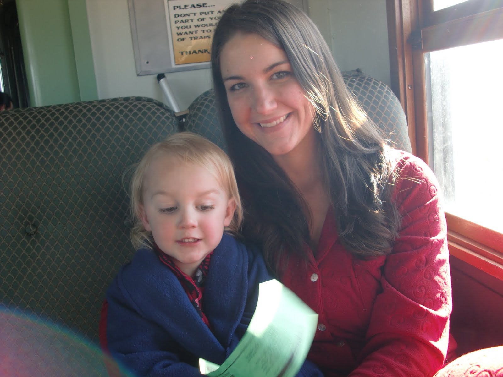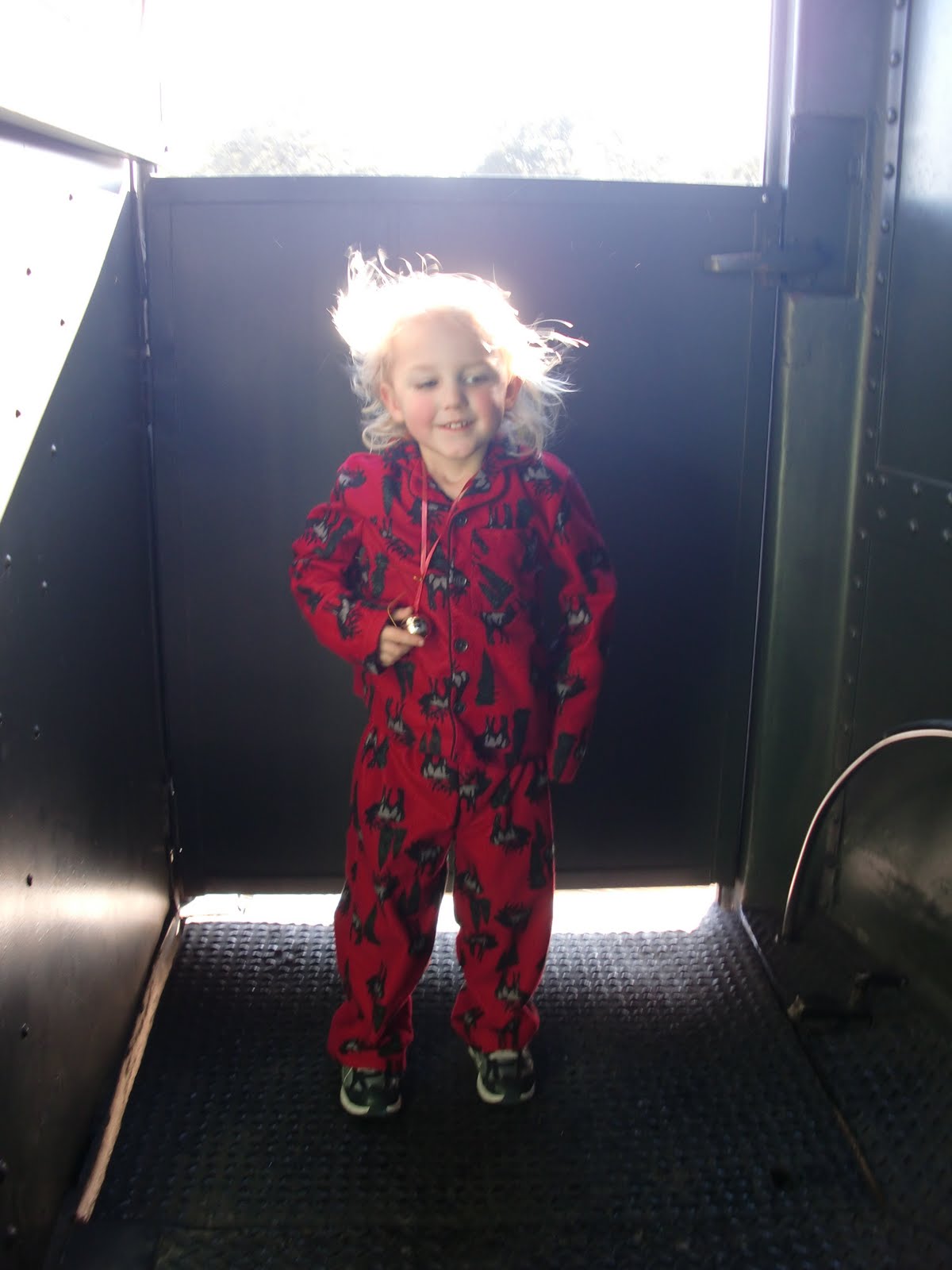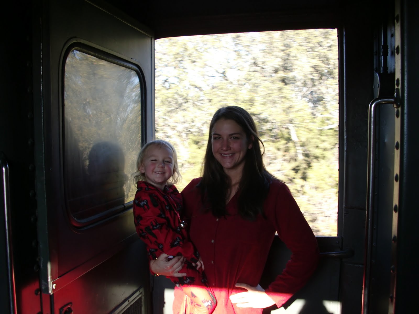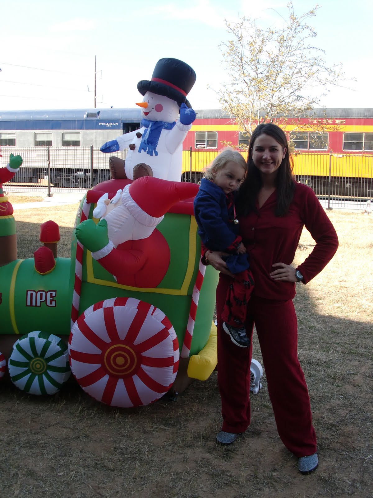 Did I mention the kids are in their Jammies the whole movie? Which is how, we ended up riding the train like this: