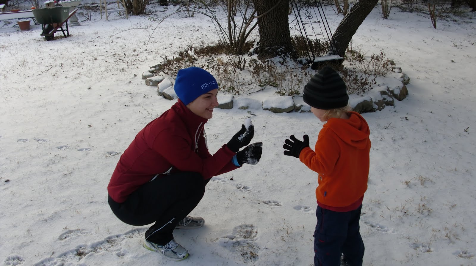 Dash only lasted about 10 minutes outside. Then he said "I don't like snow, its very cold." and headed in. Charles and I stayed out and played. (pic was after getting hit in the head)