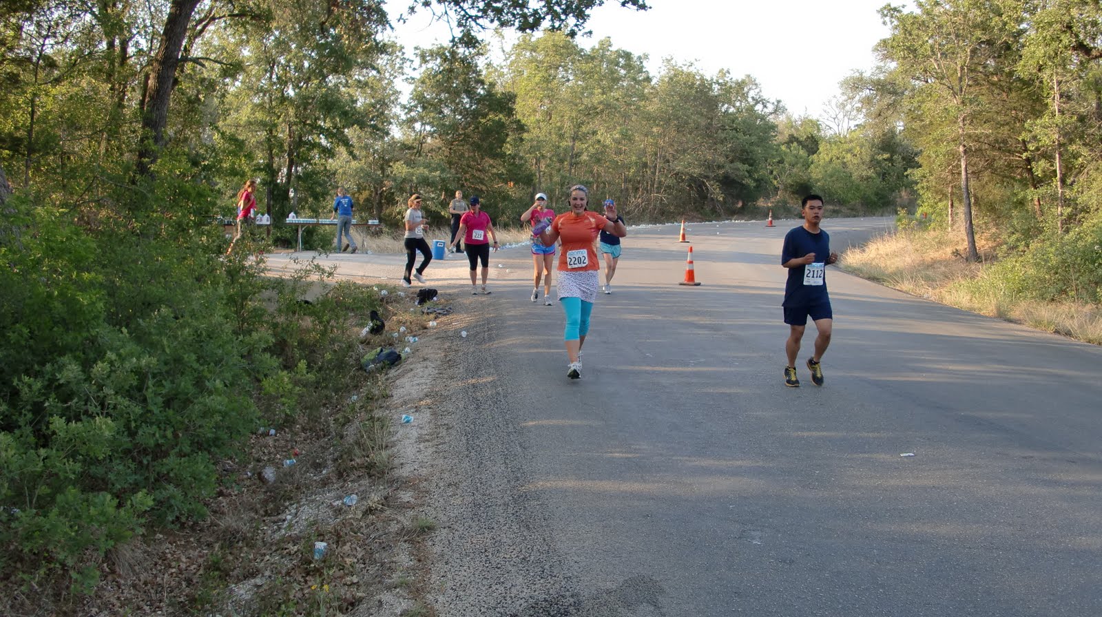 One of my friends joined back up with me. The course looped back near the start/finish area and I saw Charles and Dash again. I switched out my handheld and continued on.