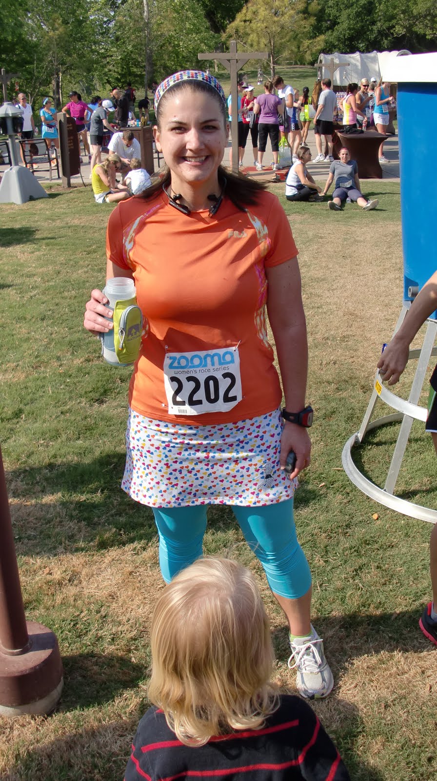 His little legs were FLYING! When we crossed the finish I of course wanted to stop, but he wanted to keep running, "Lets run Mommy, I have LOTS of energy". It was so cute, and the perfect end to the race. Finish time 2:21 and change.