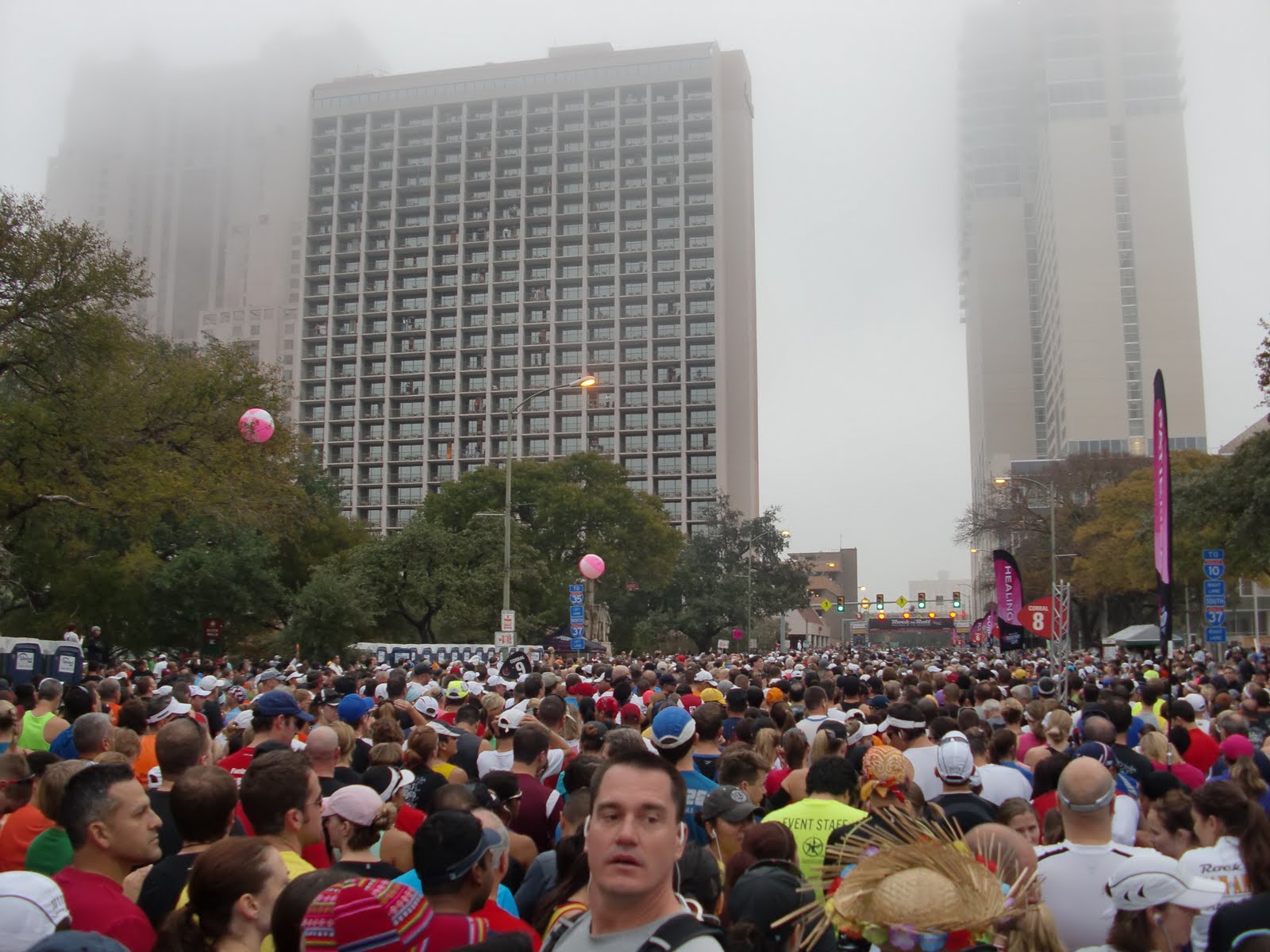 We were supposed to be in corral 10, but the corrals were already moving forward so we squeezed in right and then realized we were in corral 9. I'm standing shoulder to shoulder with someone, in a sea of tens of thousands of runners when the guy taps Charles on the shoulder.I look up and it was my DOCTOR, the one who gave me steroid shots some weeks before. So crazy to end up next to someone you know. He asked how the knee was... I brushed the question off... we made small talk and soon we were starting.